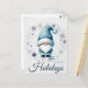 A charming watercolor illustration of a Christmas gnome, dressed in a cozy red hat, standing amidst delicate branches adorned with berries.
