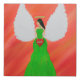 This striking painting features a beautiful angel against a bold and vibrant red and orange background. The angel wears a flowing, glittering green dress and holds a red heart inscribed with the word ‘LOVE’ across her midsection. She has large, textured white wings and a distinct green halo. The dynamic, sweeping brushstrokes in the background create a warm, energetic, and festive atmosphere. This unique artwork is perfect for adding a touch of bold color and spiritual inspiration to your home, making it an excellent choice for holiday decor or a powerful statement piece about love.