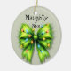 Festive Green Bow-Lights Naughty or Nice Photo Ceramic Ornament