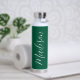 A gorgeous hunter green water bottle with white monogram for a girl or guy who loves simple, handwritten gifts for Christmas. Beautiful cursive script down the side of your bottle spelling out your name.