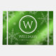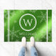 Add a festive touch to year-end and Christmas celebrations with this elegant welcome mat, which features snowflakes falling on a faux metallic forest green foil / ombre / moire background. Add initial / monogram (or logo), name, and custom text/messaging as desired.