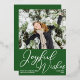 Festive Green Joyful Wishes Christmas Photo Gold Foil Holiday Card