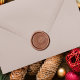Before the wax hardens, gently and evenly press the wax seal stamp into the melted wax, ensuring it's centered.