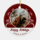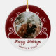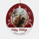 Festive Happy Holidays Foliage Red Couple Photo Ceramic Ornament