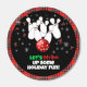This festive holiday bowling Hershey Kisses features bowling pins with red glitter and a red bowling ball with snowflakes pattern on a cheerful red plaid background the perfect design to spread seasonal fun and party cheer.