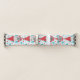 Super fun and cute for this holiday season. This design features a fun gnome with gray hair in two braids tied with red ribbons, in a tall red hat against a background of Christmas trees in shades of turquoise and red christmas balls.