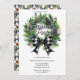 Elegant nostalgic watercolor black and white gingham check beribboned pine and berries holiday wreath "Christmas Party" design with coordinating back pattern design.