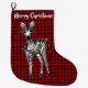 Festive Holiday Zebra, Holly wreath, buffalo plaid Large Christmas Stocking