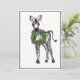 Festive Holiday Zebra Illustration, Holly wreath Card