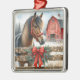 Festive Horse and Red Rustic Barn Christmas Metal Ornament