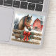 Festive Horse and Red Rustic Barn Christmas Sticker