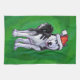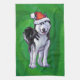 Festive Husky in Santa Hat on Green Kitchen Towel