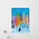 The igloo is all lit up for the holidays while the northern lights dance in the sky in the background in this colorful painting.