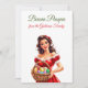 Festive Easter greeting card featuring an italian woman wearing a red dress with white lace trim. She is holding a wicker basket filled with colorful, decorated Easter eggs. The text at the top of the image reads "Buona Pasqua" in elegant green script, which is Italian for "Happy Easter."
