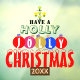Festive typography Christmas tree with yellow stars. Jolly is written inside red, pink, gold, blue ornaments. Personalize Year on bottom of brown tree trunk, or delete Year text box. Have A Holly Jolly Christmas is written in bright fun lettering. Original Artwork Design by TamiraZDesigns.