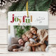 A photo Christmas ornament featuring the word "joyful" in a playful text and festive colors. The design offers space for a photo on the front and another on the back.