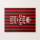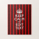 Festive Keep Calm Your Text on Red Stripes Jigsaw Puzzle