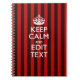 Festive Keep Calm Your Text on Red Stripes Notebook