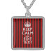Festive Keep Calm Your Text on Red Stripes Sterling Silver Necklace