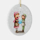 Cute Christmas ornament with an illustration of a girl and a boy singing carols. Personalize the text with your own message. Illustrated and designed by Patricia Alvarez.