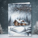 Festive Log Cabin in the Winter Woods Christmas Holiday Card