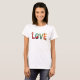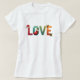 This vibrant design showcases the word 'LOVE' in a colorful gradient from teal to orange, adorned with playful Christmas