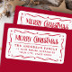 Red and white or any color return address labels with the text "Merry Christmas" in a festive font and your return address below surrounded by an ornate border with stars. You can change the background, border and font colors to any custom color with the customization tool.