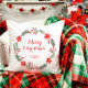 Add holiday charm with this festive merry Christmas wreath family design, perfect for seasonal decor enthusiasts. The design features a green wreath with red flowers and berries, encircling red "merry Christmas" text and a family name below. Ideal for cozying up your living space during the holidays or gifting to loved ones for a warm, festive touch.