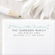 Festive and modern return address label in teal and black.