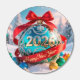 "Festive New Year 2026 holiday ornament in a snowy winter wonderland, featuring a shiny red bauble with gold and silver swirls, adorned with a big red bow and surrounded by colorful Christmas ornaments. Perfect cheerful holiday greeting scene."