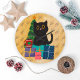 Festive Merry Christmas Cute Black Cat Designed by Sofia MyArt