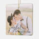 Festive Our First Christmas Engaged Ceramic Ornament. Personalize with your custom photo and year. A perfect gift for yourself, family and friends this Christmas holiday season.