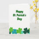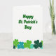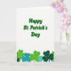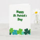 A warm message of St. Patrick’s Day sits on a bright white background, with the words “Happy St. Patrick’s Day” stretching across the upper half in rich emerald green 💚. The lettering has a soft shadow that makes it look slightly raised, as if it’s floating just above the page. Along the bottom edge, a row of shamrocks forms a friendly border, like a little gathering leaning in close together ☘️. The clovers range from deep forest green to light lime, with a few cool teal accents tucked between them for a fresh contrast. Several shamrocks have thin white outlines that help each one stand apart, like partners in a group photo. Their heart-shaped leaves add a gentle, affectionate touch, suggesting a shared smile between friends without showing any faces. The top stays open and airy while the lower border feels full and lively, with overlapping greens and teals against the white.