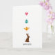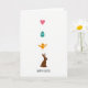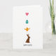 This card features a vertical lineup of simple spring icons on a white background, arranged so your eye travels gently from top to bottom. At the top sits a bright pink heart that reads like a quiet note of affection between close friends. Under it is an egg shape with neat horizontal stripes in teal and deeper green, like a small decorative keepsake. Next comes a sunny yellow chick with wings lifted mid-flutter, giving the scene a light, friendly energy 🌷. Lower down, a slim brown bunny with long ears stands alert, as if pausing to listen, adding a sweet, companionable touch 🐰. Along the bottom edge, a short seasonal greeting appears in plain lettering, centered and drawn in a dark, ink-like color. The heart is a solid pink shape, the egg stripes alternate teal and green, and the bunny silhouette is a warm brown against the open white space.