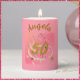 Festive Peachy Fifty Year Birthday Commemoration Pillar Candle