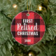 Festive Plaid Personalized First Christmas Retired Ceramic Ornament