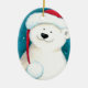 Festive Polar Bear in a Santa Hat Ceramic Ornament