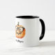This charming mug features a hand-drawn illustration of a smiling pumpkin wearing glasses, perfect for anyone who loves a bit of nerdy charm. The warm, autumnal colors and the friendly pumpkin character bring a festive and cheerful vibe, ideal for the Halloween season or as a fun everyday accessory. Make it your own by adding a name below the adorable gourd, making it a unique and thoughtful item. Enjoy your favorite hot beverages in style with this whimsical and eye-catching design.
