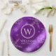 Festive Purple Foil Snowflakes Monogram Name Paper Plates