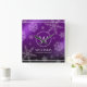 Add a festive touch to year-end and Christmas celebrations with this elegant clock, which features snowflakes falling on a faux metallic purple foil / ombre / moire background. Add initial / monogram (or logo), name, year, or custom text as desired.