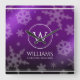 Festive Purple Foil Snowflakes Monogram Name Square Wall Clock
