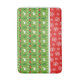 Bright, colorful, festive! This beautiful bath mat will bring a smile to everyone's face this holiday season! It's green with a pattern of reindeers, snowmen, snowflakes and geometric triangles at the top and a red border with white snowflakes at the bottom. This mat is perfect for the entire winter holiday season.