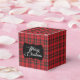 A classic and festive red and black plaid favor box with a stylish black ribbon.