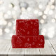 Festive Red Christmas Wrapping Paper with white doodles and festive words on a red background. Christmas doodles included: Christmas tree, deer, heart, presents, baubles, stockings, snowmen and more. Background in red with white hand drawn elements.