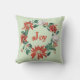 Festive Red Christmas Joy Floral Wreath on Sage Throw Pillow