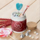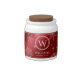 Add an extra festive touch to year-end and Christmas celebrations with this elegant candy jar, which features snowflakes falling on faux metallic red foil / ombre / moire and black background. Add initial / monogram (or logo), name, or custom text as desired.
