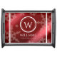 Festive Red Foil Snowflakes Monogram Name Serving Tray