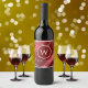 Festive Red Foil Snowflakes Monogram Name Wine Label