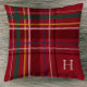 Festive red holiday plaid Christmas monogram decor Throw Pillow