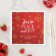 Add a touch of Christmas to the dining experience with this festive napkin, which features the words "love, peace, and joy" in serif and script lettering surrounded by twinkling orange snowflakes on a warm red gradient background. Personalize with the family name and/or text of your choice.